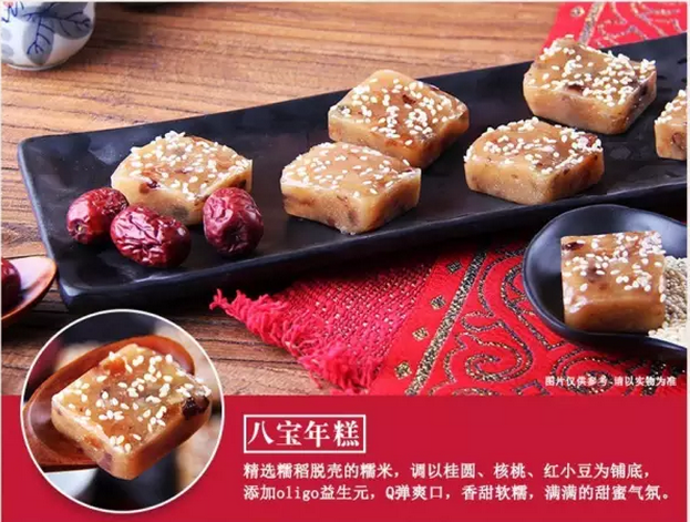一寶平安二寶旺, 三寶健康四寶壽;五寶吉祥六寶財,七寶如意八寶運(yùn);精選糯稻脫殼的糯米,調(diào)以桂圓、核桃、紅小豆為鋪底,Q彈爽口,香甜軟糯;免蒸煮,開袋即食。
