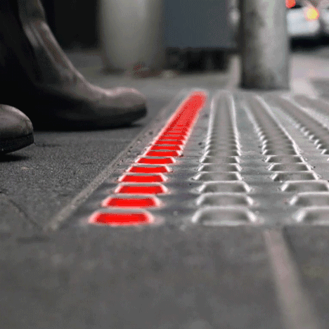 將LED信號燈安置在了地上,為了提醒低頭族過馬路也注意安全,這讓小編想起了最近追的劇《鬼怪》里的一個情節(jié):陽光下,隨著女主的腳步,斑馬線亮起來,像在五線譜上跳舞。如果真的有這樣的馬路,每個走在上面的人都是韓劇主角了,想想都很激動。
